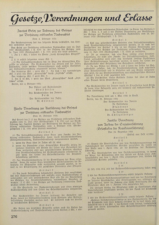 Pfundtner/Schlegelberger: Fünfte Verordnung zur Ausführung des Gesetzes zur Verhütung erbkranken Nachwuchses, 25. Februar 1936 (DAeBl. 1936, S. 278)