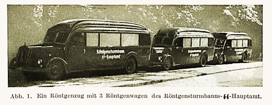 Ein Röntgenzug mit 3 Röntgenwagen des Röntgensturmbann-SS-Hauptamts (1939). In: Deutsche Militärarzt 4 (1939), H. 11, S. 493
