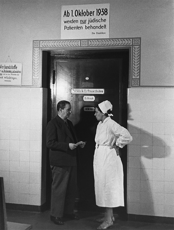Den Entlassungen aus dem Staatsdienst infolge des „Gesetzes zur Wiederherstellung des Berufsbeamtentums“ vom 7. April 1933, dem Entzug der Kassenzulassung durch Verordnung vom 22. April 1933 und der Erschwerung der privaten Niederlassung folgte am 25. Juli 1938 der Erlass der Vierten Verordnung zum Reichsbürgergesetz. Diese Verordnung verkündete die „Bestallungsentziehung der jüdischen Ärzte“ zum 30. September 1938 und bedeutete das Verbot für jüdische Ärzte, ihren Beruf in Deutschland auszuüben. Mit der Entziehung der Approbation zum 30. September 1938 war dieser Vorgang abgeschlossen. Die Inschrift „Ab 1. Oktober 1938 werden nur jüdische Patienten behandelt!“ dokumentiert diesen Schlusspunkt. Sie stammt aus dem Jüdischen Krankenhaus in Berlin, das offenbar von der gesamten Berliner Bevölkerung besucht wurde und in hohem Ansehen stand.