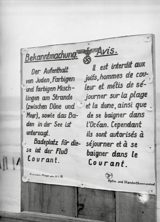 Sommer 1940, Rassistisches und antisemitisches Schild am französischen Strand